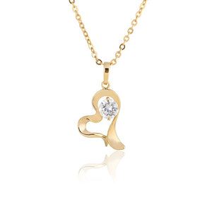 Wholesale Fashion White Gold-color White Round CZ Trendy Heart Pendant Necklace