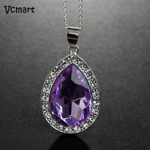 1Pcs Princess Sofia The First Chain Necklace Stainless Steel with Purple Teardrop Amulet Pendant