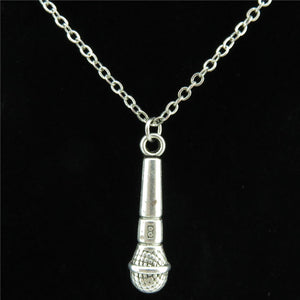 Q19A61 Silver Chain Alloy Women Jewelry Music Voice Tube Microphone Pendant Collar Chunky Necklace 18