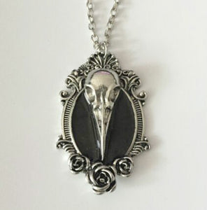 Hot Gothic Rose Woodpecker Oddities Raven Bird Skull Pendant Necklace