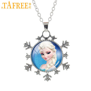 Ladies Long snowflake Chain Jewelry Glass Cabochon Princess Elsa Anna Snow Queen Pendant Necklace For Girls ES135