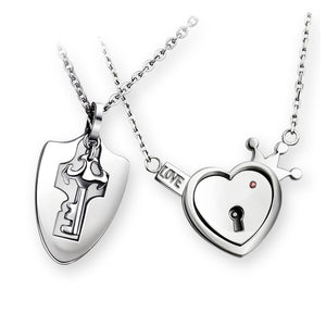 European and American fashion jewelry Key and Heart Lock I love you Couple Pendant Necklace Valentine's Bithd D Gift