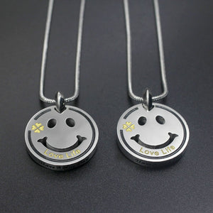 Face smile love life necklaces pendant chain necklace man collier femme stainless steel necklace gifts for women man family 55cm
