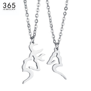 Famous Hand Cut Coins Buck And Doe Lover Necklace Stainless Steel Kissing Heart Shape Necklace Set For Couple Drop Shipping