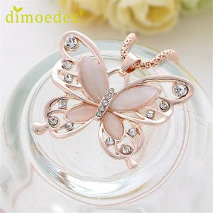 Gussy Life wholesale Fashion Womens Lady Rose Gold Opal Butterfly Pendant Necklace Sweater Chain Hot Feb9