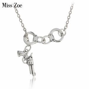 Retro Pist Handcuffs Couple Pendant Necklace Creative Lover's Jewelry Vintage Gift for Boy Friend Girl Friend