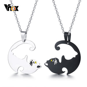 Cute His and Her Couples Necklaces Stainless Steel Beloved Pet Cat Pendant Colar Gifts Free O Chain 20