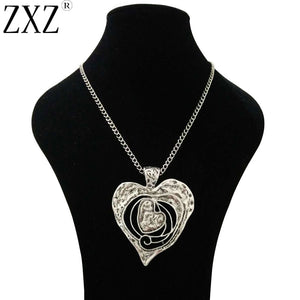 Large Antique Silver Abstract Metal Heart Pendant Long Curb Chain Lagenlook Necklace 34