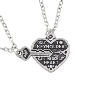 2 PCS Best Friends Necklaces For Lovers Gift Classic Heart Key Lock Only The Keyholder Can Unlock My Heart Pendant Necklace