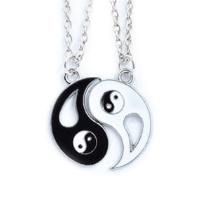 2 Pcs Black White Yin Yang Hollow Pendant Necklace Couple Sister Friend Jewelry