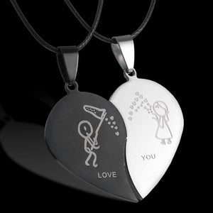 New Arrival Fashion Designed Stainless Steel Love Heart Puzzle Lover's Couple Pendant Necklace CP Necklace 5BKL