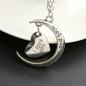 New Fashion I Love You To the Moon and Back Silver Plated Necklace Moon Heart Choker Pendant Necklace for Lovers Jewelry Gift