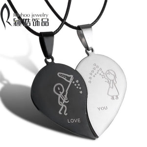 Couples Jewelry Broken Heart Necklaces Black Couple Necklace Stainless Steel Engrave Love You Pendants Necklace Valentine's Day