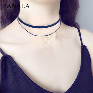 Jewelry NK767 Bijoux Leather New Minimalist Geometric Necklace For Gift Choker Circle Punk Women Gothic Short Summer Chain