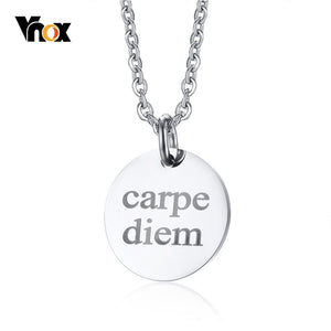 Engraved Carpe Diem Necklaces for Men Solid Silver Color Coin Round Pendant Necklace colar masculino Free Chain 20