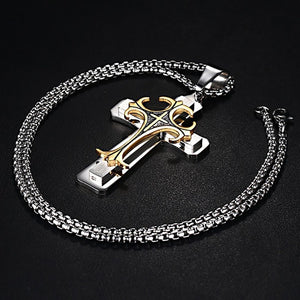 Men's Stainless Steel Cross Pendant Necklace 24 Chain Religion Jewelry