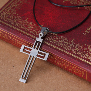 Religious Jesus cross Pendant Stainless Steel necklaces pendants Leather Chain charm necklace for men jewelry