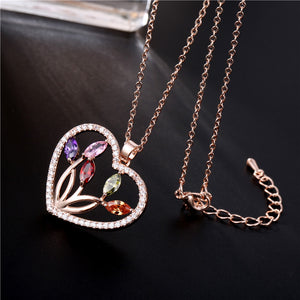 Fashion High Quality Rose Gold Color Heart Shape Cubic Zirconia Wedding Necklaces Crystal Jewelry Statement For Party