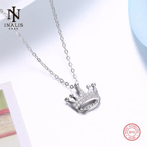 Fashion Small CZ Crown Pendant Silver Chain Necklace For Women Girls Party Crystal Cubic Zirconia Summer Jewelry