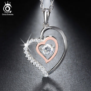 Genuine 925 Silver Double Heart Pendant Necklace with 0.3 ct Crystal Rhodium mixed Rose Gold Color Necklaces SN15