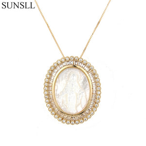 Gold Color Copper White Color Cubic Zirconia And Shell Oval Pendant Necklaces Women's Fashion Jewelry CZ Colar Feminina