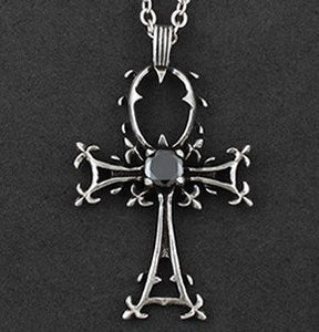 FreeShipping giftBag Wholesale alloy crystal fashion jewelry Gothic Ankh Retro pattern cross Pendant necklace Sweater chain 2033