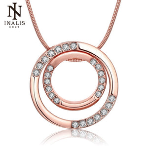 Gold Color Double Circle Zircon Necklace Wholesale Chain for Women Girl Jewelry