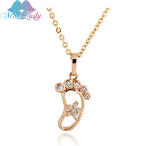 Rose Gold color Zircon Cute Little Baby Foot feet footprint Necklaces & Pendants statement Jewelry for women