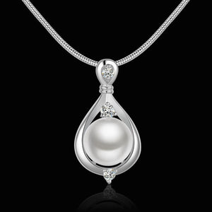 Fashion Crystal Long Chain Necklace Rhinestone Drop Simulated Pearl Pendant Necklace For Women Jewelry Accessories