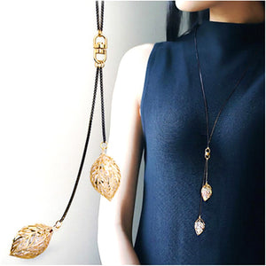 Gold-Color Leaf Necklace Long Design Y Shaped Necklaces & Pendants Classic Trendy Jewelry Accessories All Match