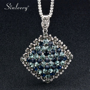 Vintage Full Dark Blue Rhinestone Big Pendant Long Necklace for Women Antique Silver Color Statement Jewelry MY433