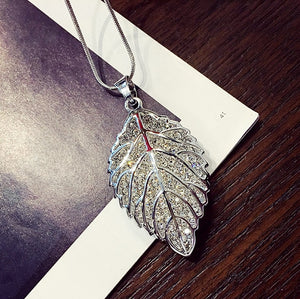 Multi-layer Crystal Leaves Long Necklace Women Fashion Jewelry Sweater Necklaces & Pendants Cute Gift