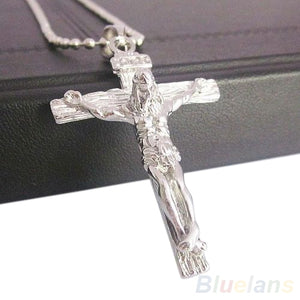 Men's Stainless Steel Silver Jesus Cross Chain Pendant Necklace