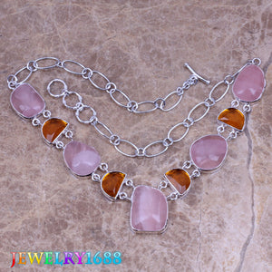 Captivating Pink Natural Stone Brown Morganite 925 Sterling Silver Grade Necklace L555