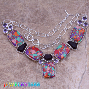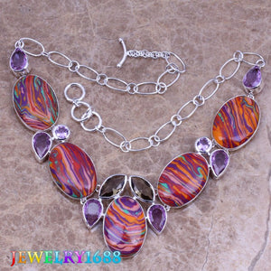 Fabulous Multicolor Natural Stone 925 Sterling Silver Grade Necklace L494