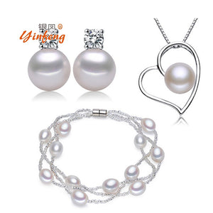 Lovely heart pendant necklace 100% genuine natural pearl necklace pendant&earrings&bracelet for women white colour