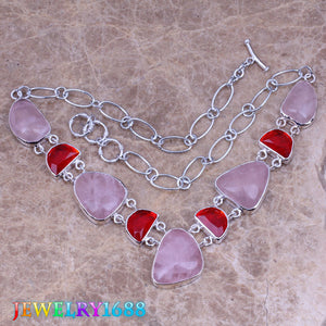 Majestic Pink Natural Stone Red Garnet 925 Sterling Silver Grade Necklace L698