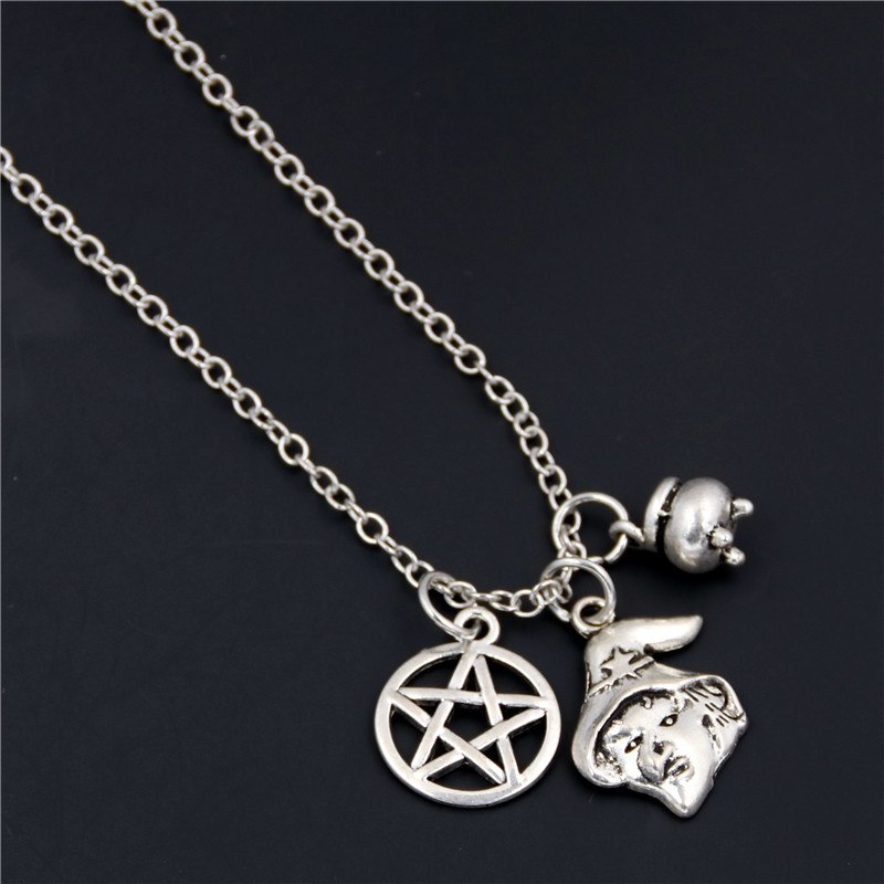 1pc 2018 Halloween Goth Jewelry Skull Charms Bat Pendant Necklace For Festival Gift For Women Witch Hat
