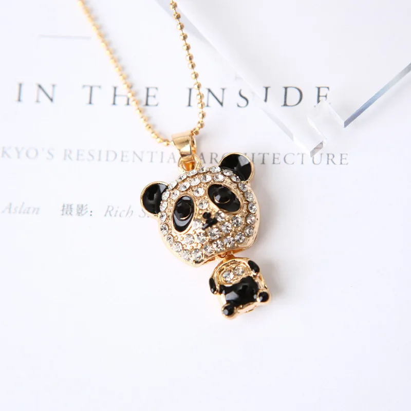 2018 Retro-selling Cute Rhinestone Panda Pendant Necklace for Women Crystal Sweater Necklaces Jewelry Accessories Christmas Gift