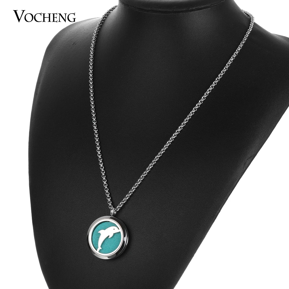 30mm Perfume Diffuser Locket Necklace Dolphin 316L Stainless Steel Magnetic Randomly Send 5pcs Oil Pads as Gift VA-813
