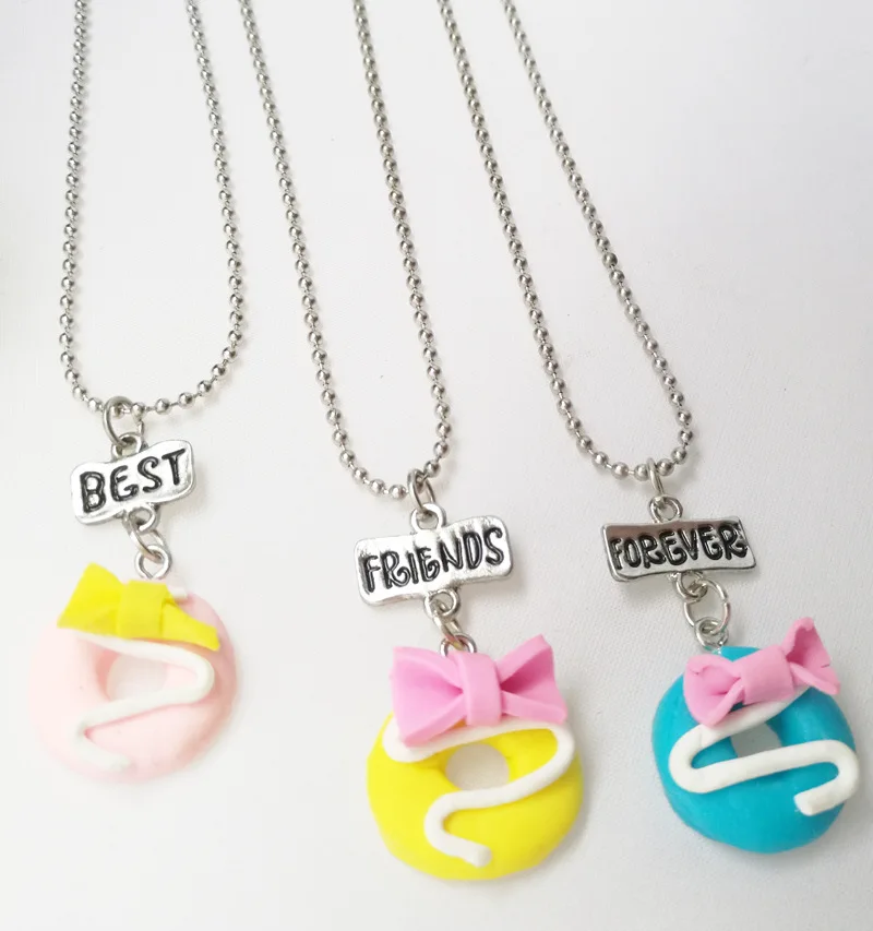 3PCS/Set Friends doughnut Stereo Imitation BFF Necklace For Children Best Friends Forever Kid Jewelry Gift ert27