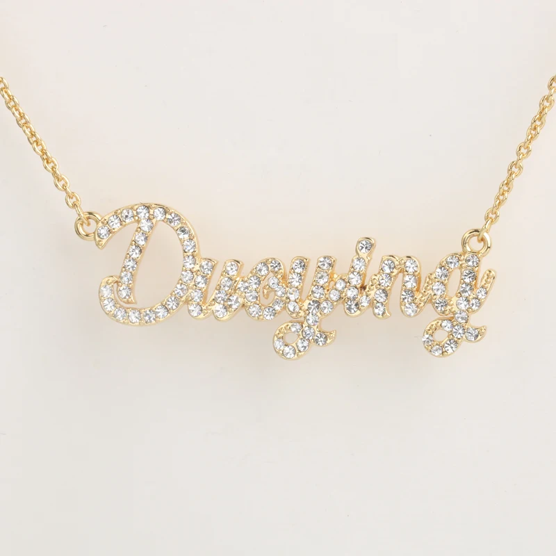 Custom Jewelry Crystal Plating Really Gold Sparkling Cut Carrie Style Name Necklaces Personalized Nameplate Necklace