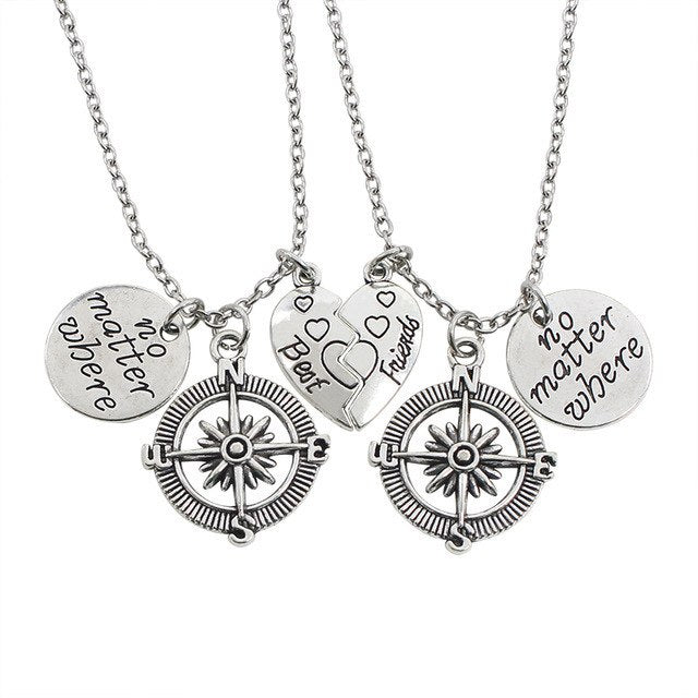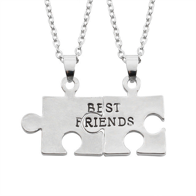 Best Friends Pendant Necklace Women Men Splicing Geometry Pizza Love Heart Necklaces Fashion Couple BFF Friends Jewelry Colar