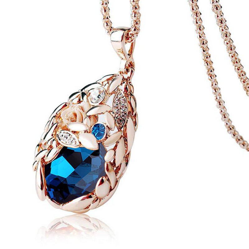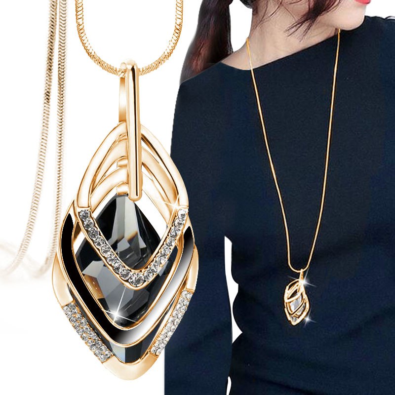 European and American New fashion Golden Hollow Geometric Big Crystal Stone Pendant Necklace Fine Jewelry for women personality