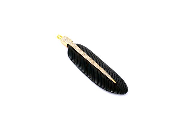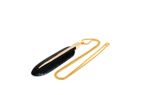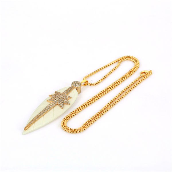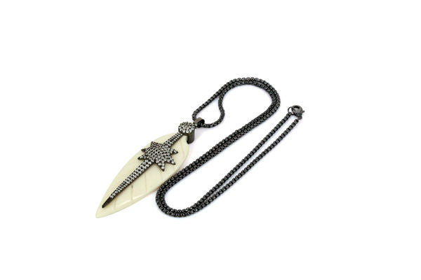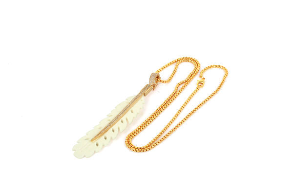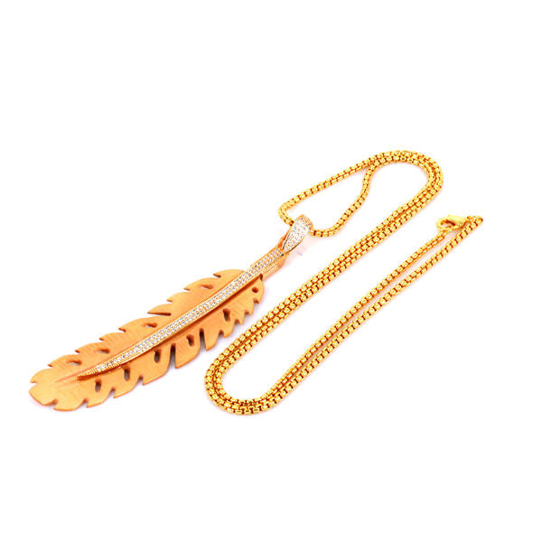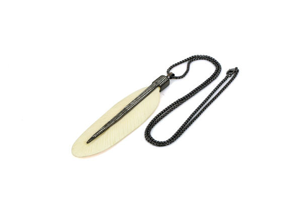 New Fashion Amazing Long Feather Bone Pendant Unique Design Hematite Bead Necklace With CZ Micro Pave Pendant Jewelry