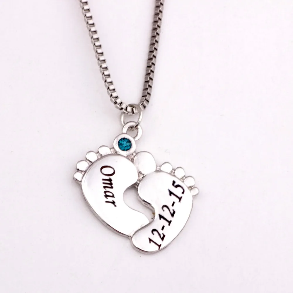 Personalized Baby Feet Necklace with Birthstones New Arrival Birthstones Long Necklaces Custom Made Any Name YP2494