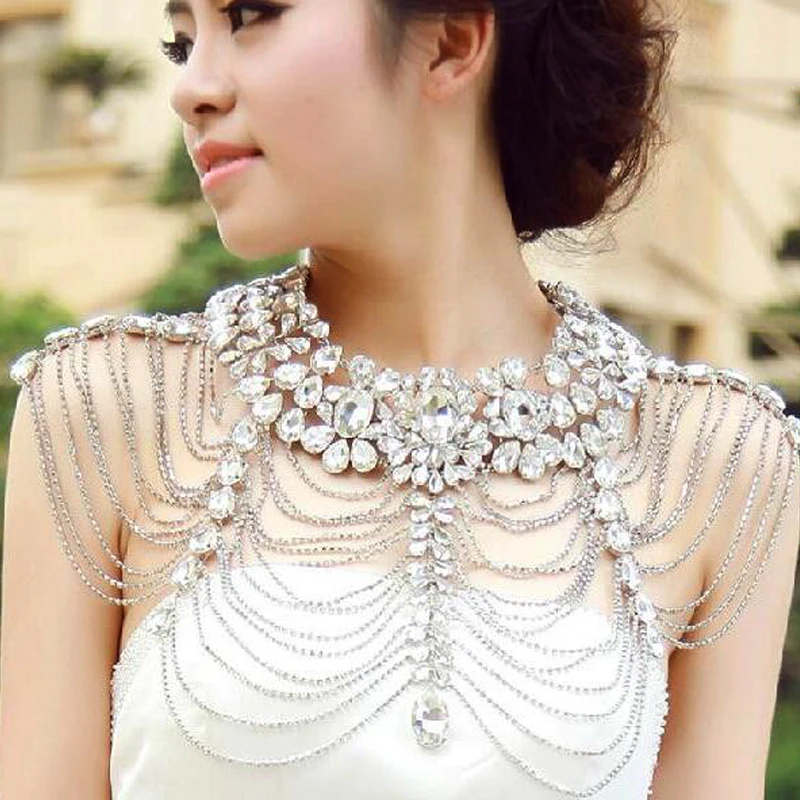 Rhinestone Crystal Bridal Handmade Wedding Shoulder Halter Necklace Imitation Women Pageant Party Prom Jewelry Bijoux