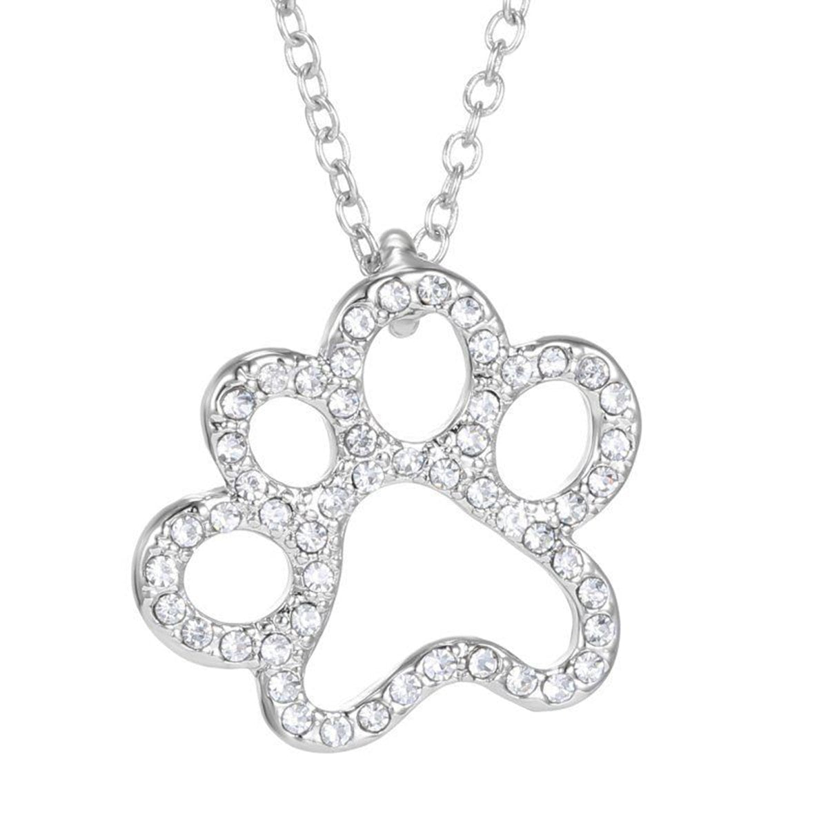 Silver Crystal Animal Pet Memorial Necklaces Cat Dog Puppy Heart Shape Pendant Necklace Rhinestone Jewelry