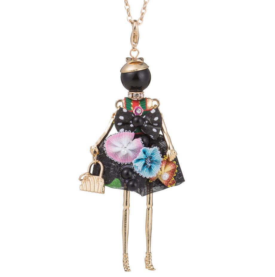 Sweet Lady Yarn Cloth Bowknot Dress Doll Necklace Statement Flower Women Jewelry Christmas Gifts Jewelry Accessories Top-rated
