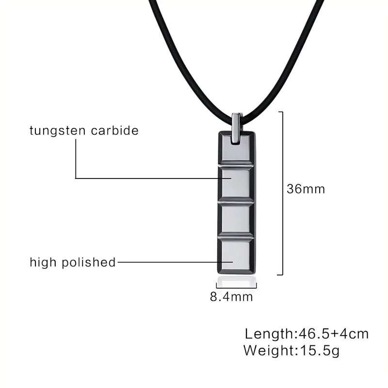 Classical Grid Style Necklace for Men Jewelry Tungsten Carbide Male Necklaces & Pendants Free Black Chain
